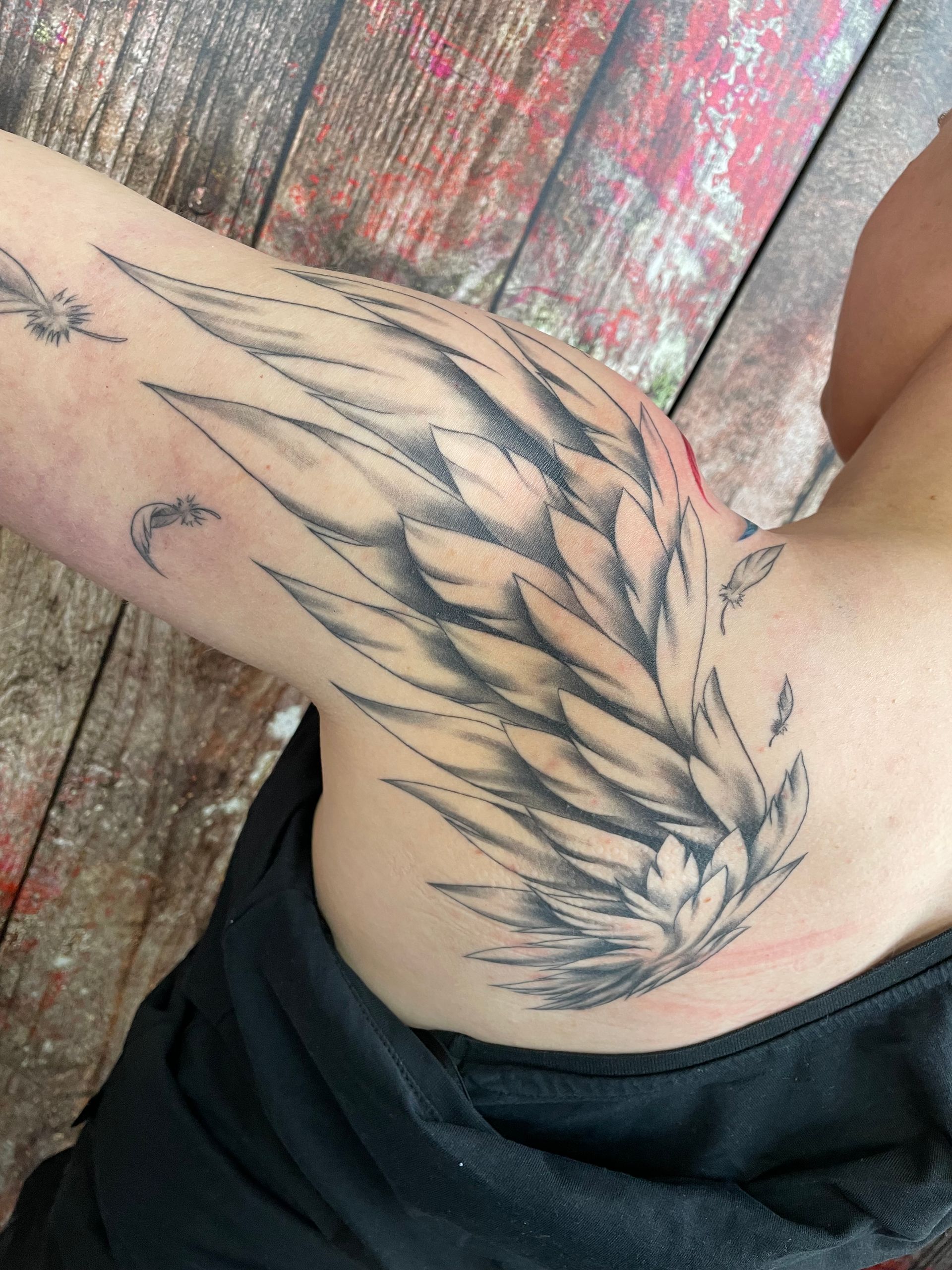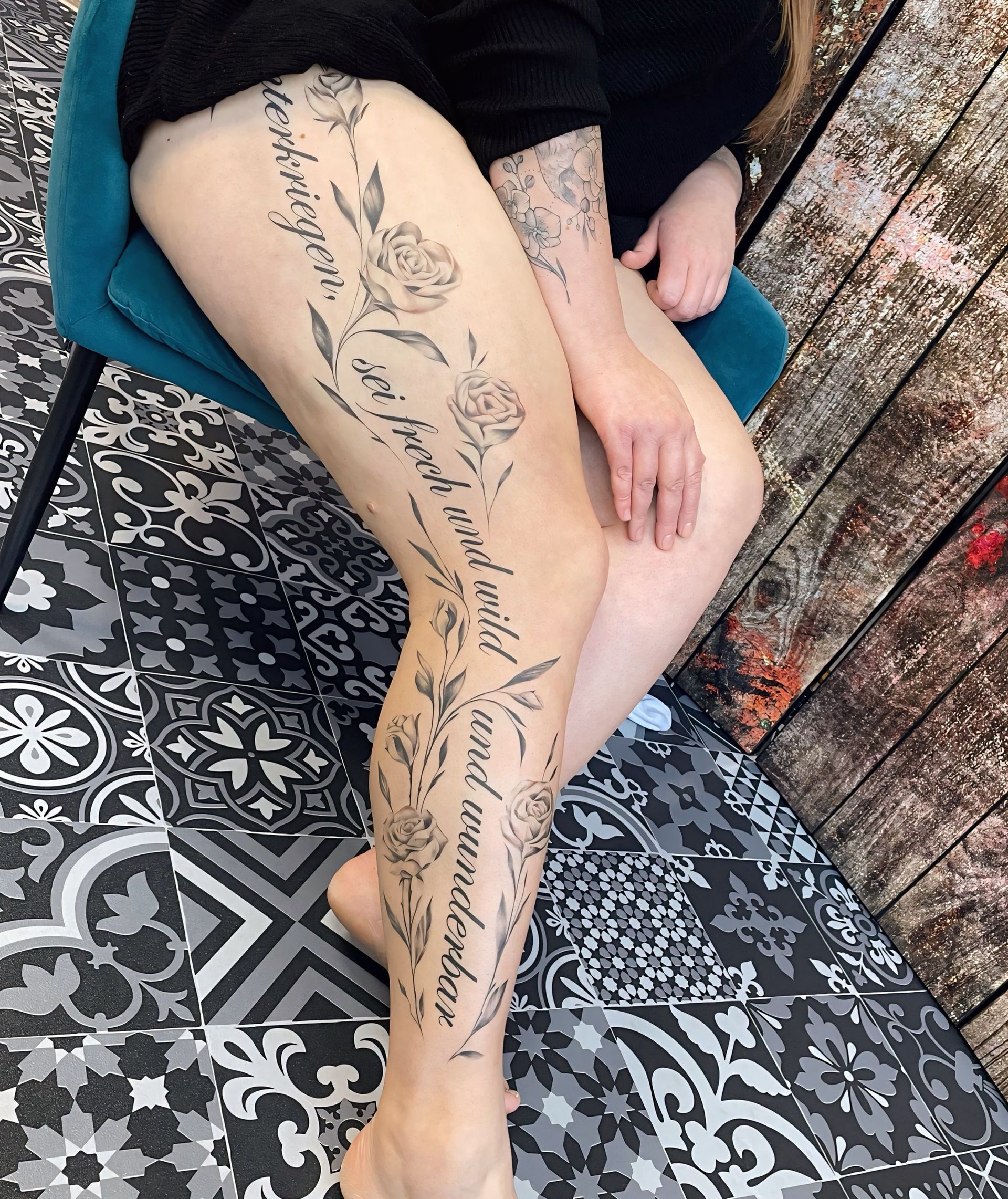 Bei mir bekommst du hochwertige Tattoos, die mit Liebe zum Detail und Blick fürs Ganze entstehen – individuell entworfen, in entspannter Atmosphäre und natürlich gestochen nach aktuellen Hygienestandards.