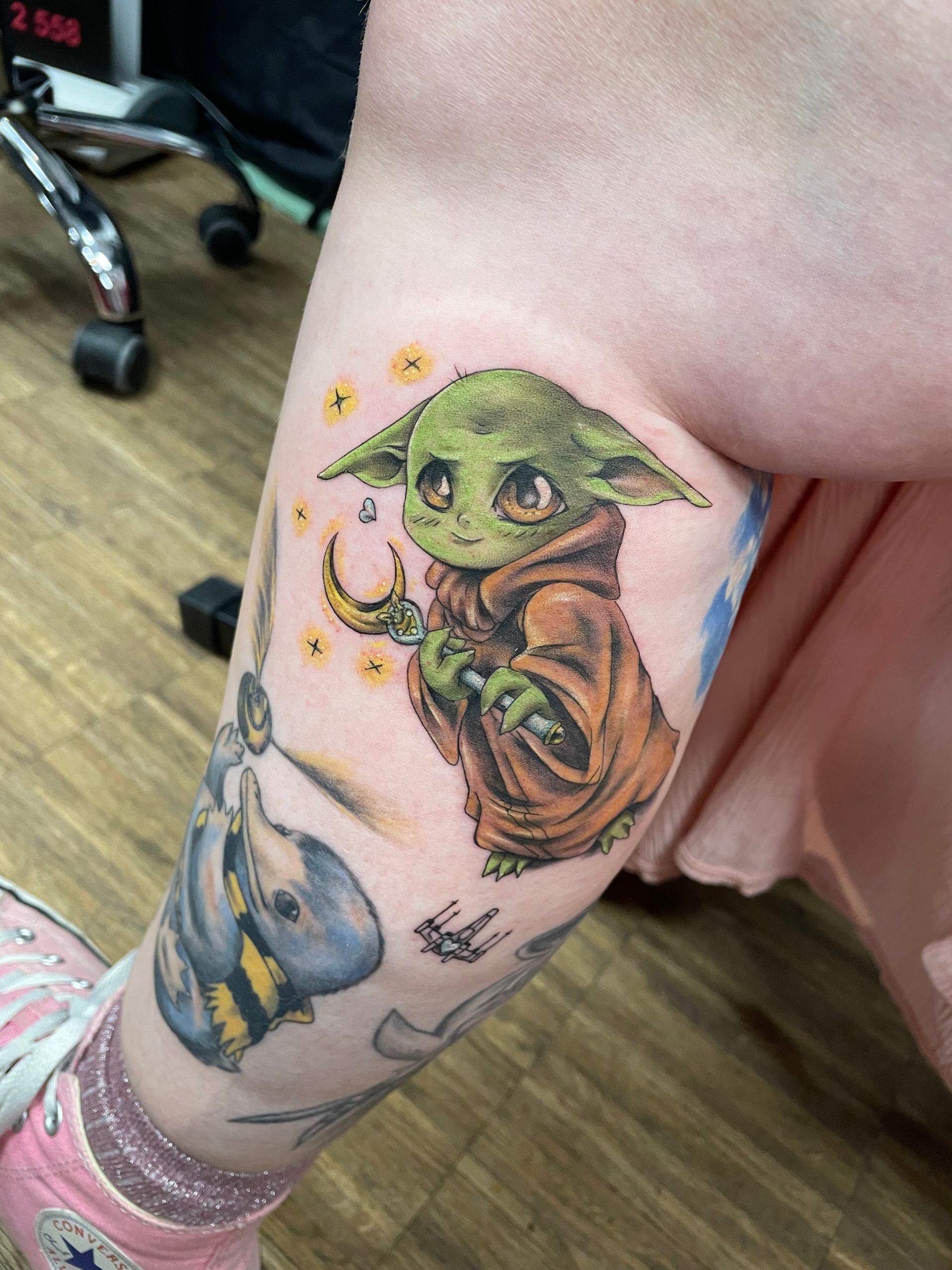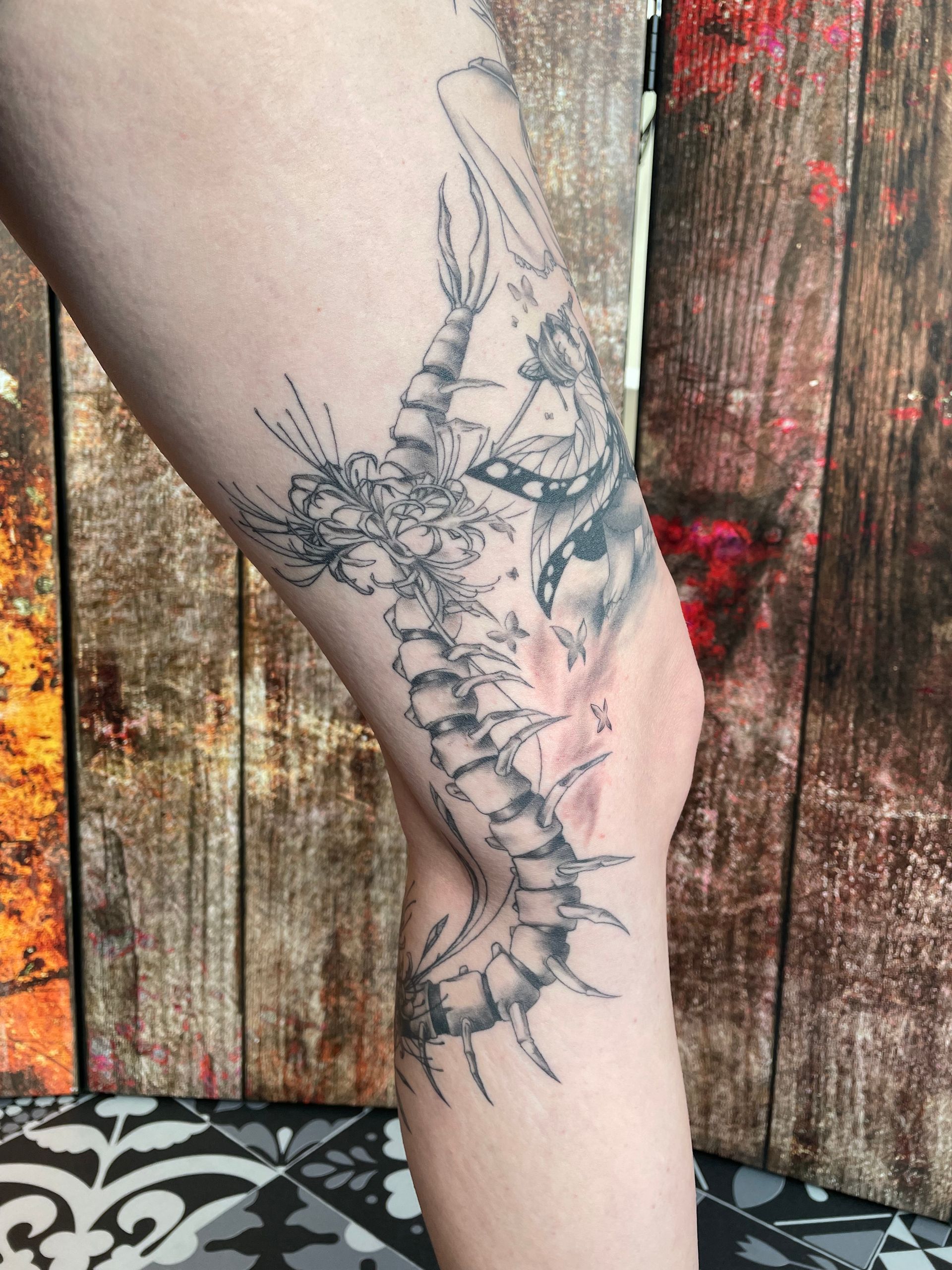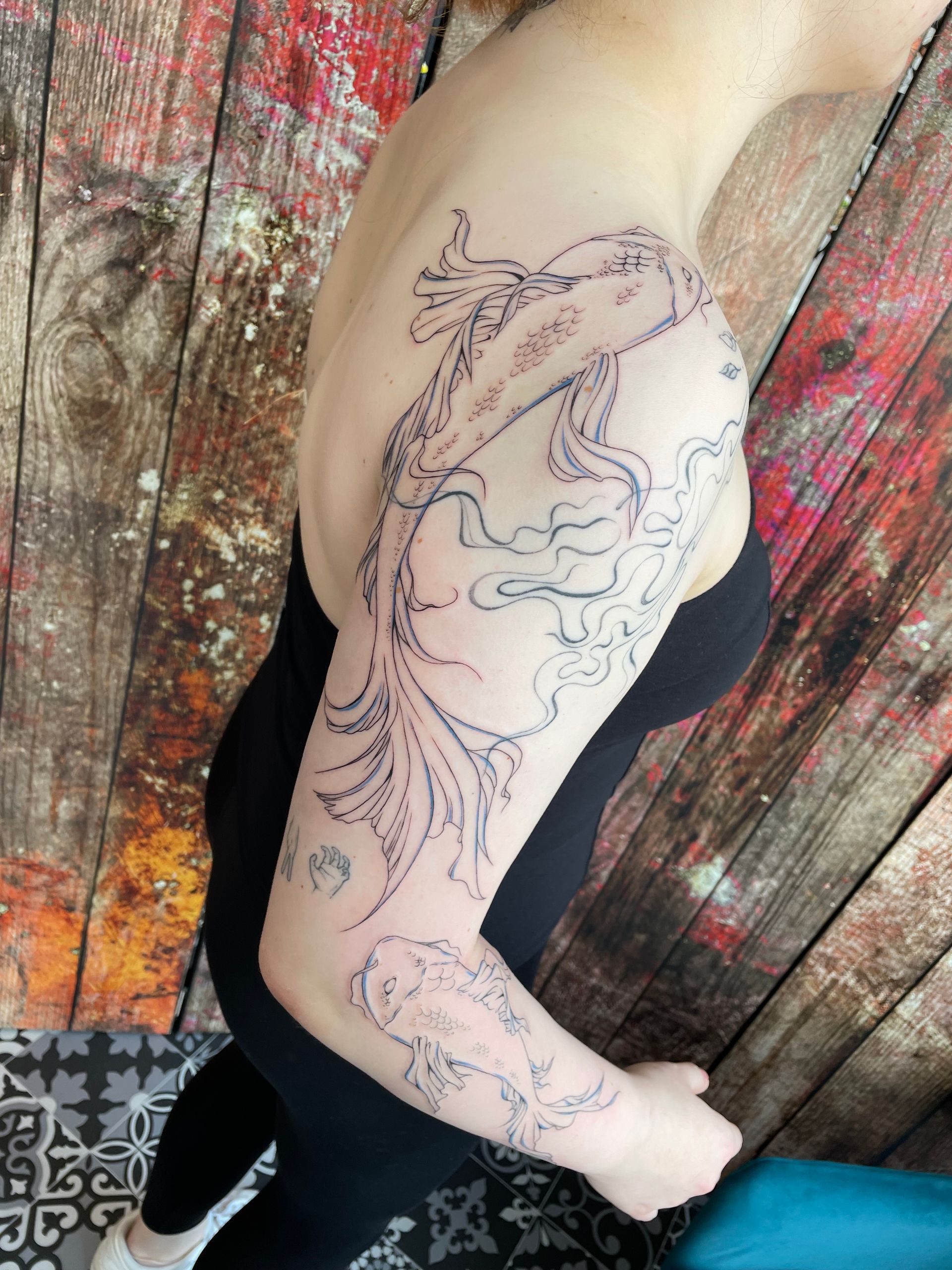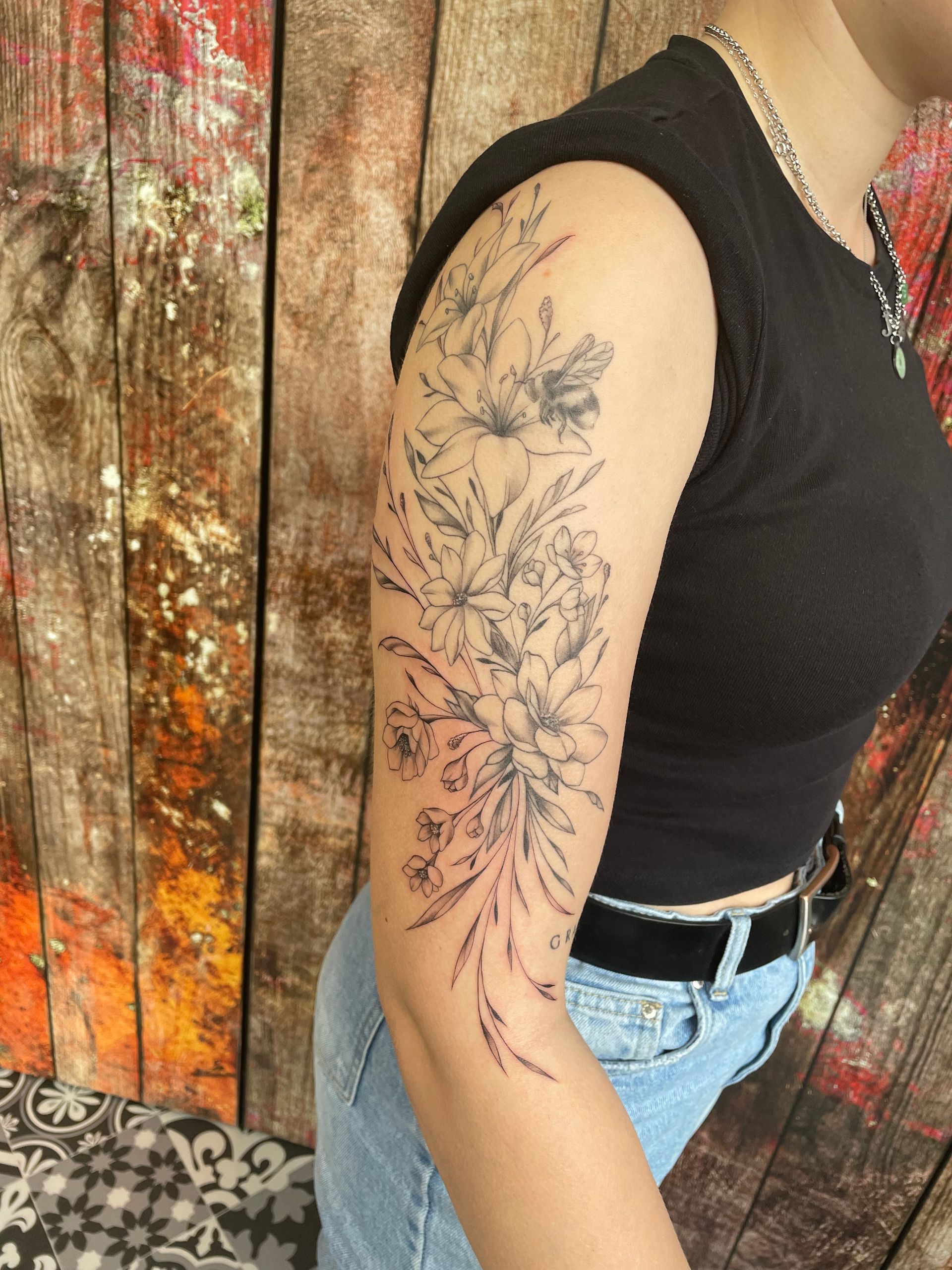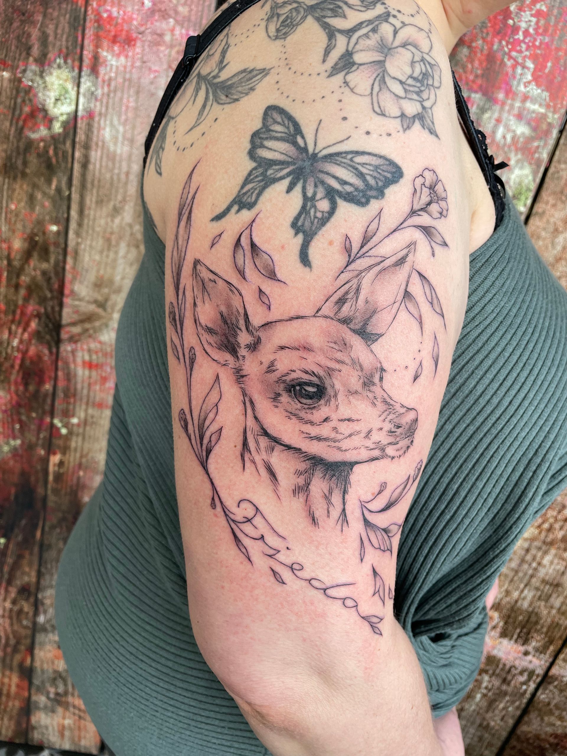 Ich bin Künstlerin mit über 20 Jahren kreativer Erfahrung – und seit sieben Jahren als Tätowiererin tätig. Kunst war für mich schon immer mehr als ein Hobby: Es ist mein Werkzeug, um Emotionen, Gedanken und Wünsche sichtbar zu machen. Ich zeichne neben verschiedenen Medien sehr gerne freihand, direkt mit dem Marker auf die Haut. Das ermöglicht mir die maximale künstlerische Freiheit und dir ein unvergessliches Erlebnis.